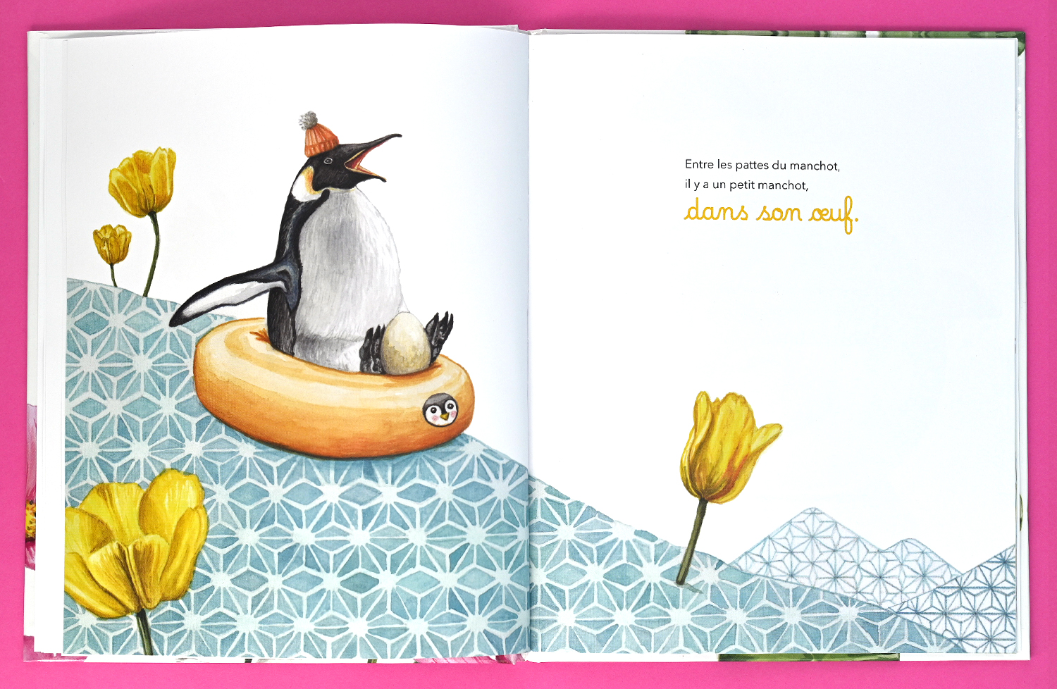 Entre les pattes du manchot, il y a un petit manchot, bien au chaud.
