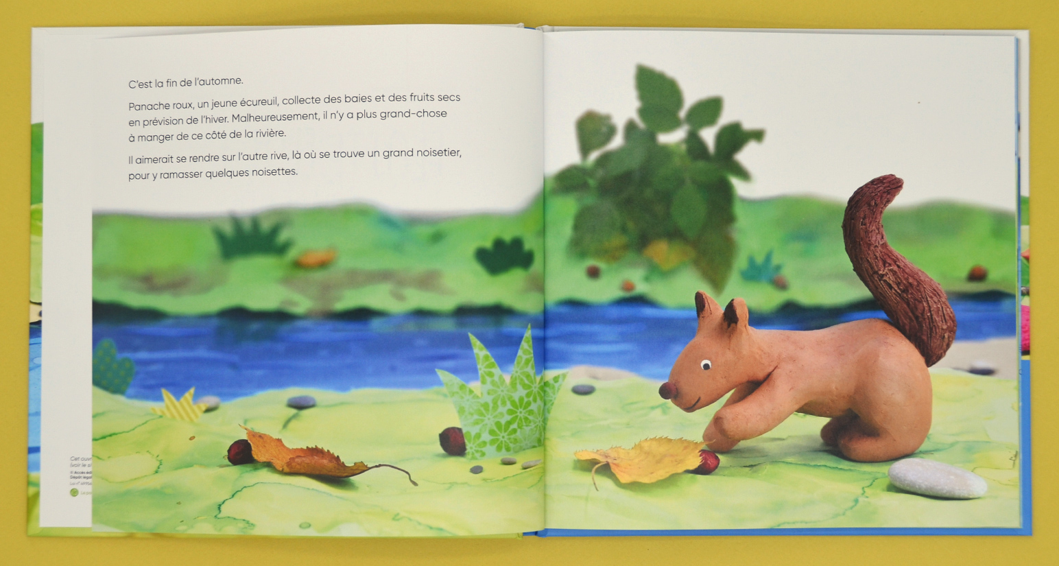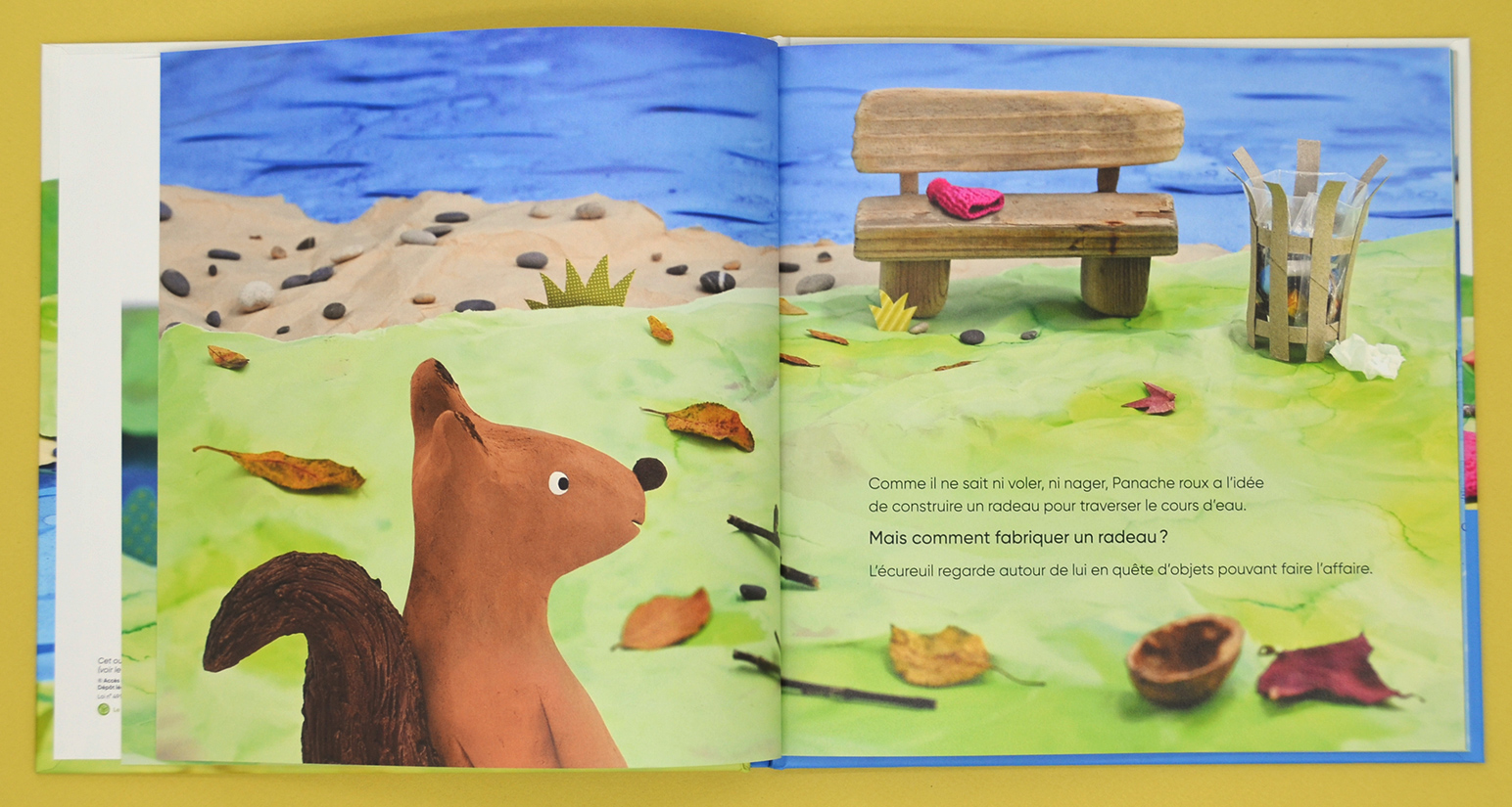 Quand vient l’hiver, Panache roux décide de construire un radeau pour franchir la rivière. Entre essais, trouvailles et surprises, il découvre que les matières ont chacune leurs particularités et que flotter peut devenir une vraie aventure ! Parviendra-t-il à rejoindre l’autre rive ?